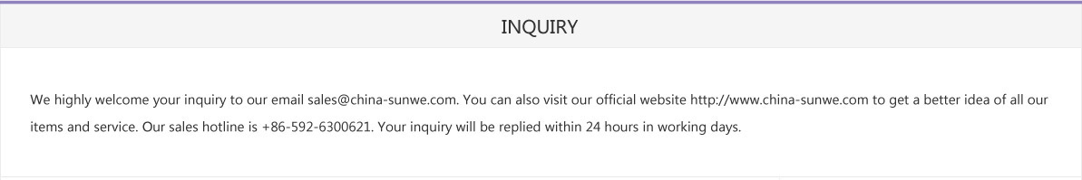 You can consult your trusted dealer for inquiry, you can also visit our official website: http://m.jiefengtz.com or call our sales hotline: + 86-592-6300621 for inquiry, We will reply your inquiry within 24 hours (excluding rest days).